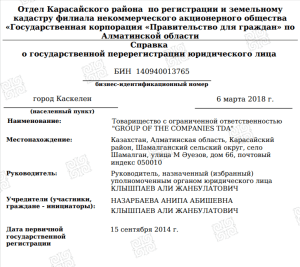 Согласно сведениям Комитета госдоходов Минфина, по состоянию на начало 2026 года обязательства ТОО GROUP OF THE COMPANIES TDA перед бюджетом превысили 92,3 млрд тенге.