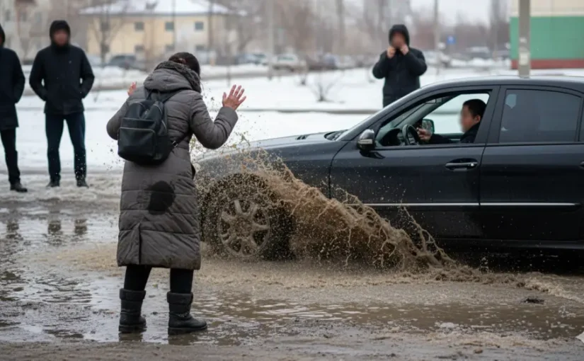 Водитель Mercedes обрызгал казахстанку и попал под суд